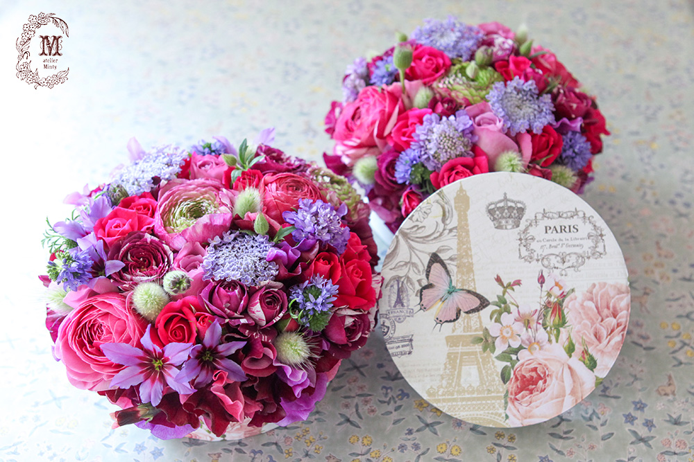 基本的に、色味や形は同じような花材で作っています。
